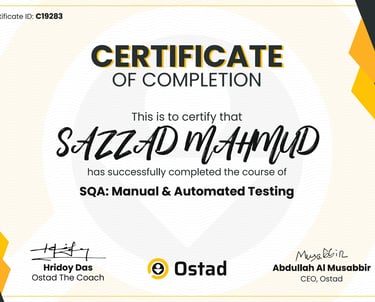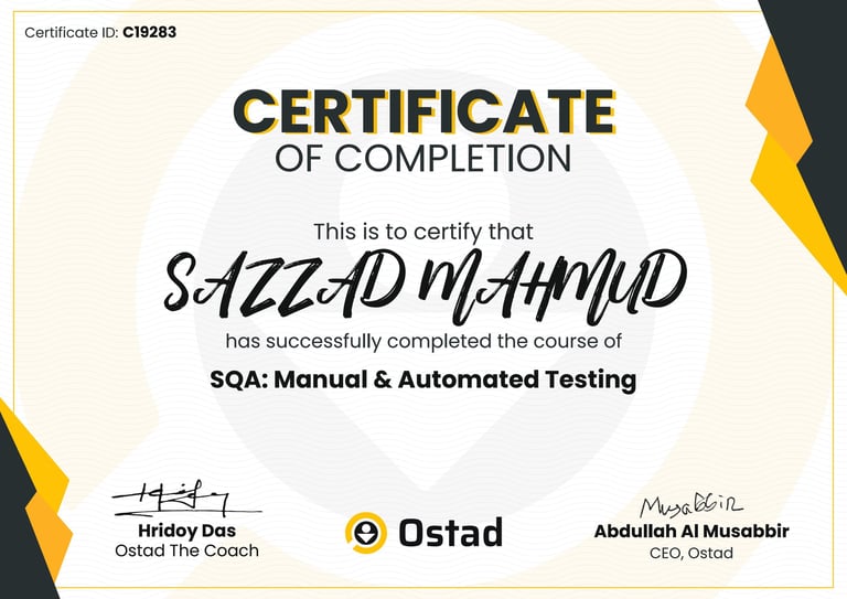 Successfully completed professional training in Software Quality Assurance (SQA), including Manual and Automated Testing, gaining hands-on experience in testing processes, tools, and best practices.