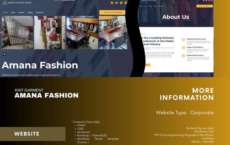 Amana Fashion is a sleek, minimalist portfolio-style website designed to showcase a fashion or design brand. It features clean navigation with key sections such as Home, About, Projects, and Contact. The Projects section serves as a visual gallery, highlighting past work or fashion pieces, while the About page gives visitors insight into the brand’s vision and background. The Contact form allows easy communication, making it functional as well as stylish. The overall design is responsive, ensuring a smooth experience across desktop and mobile.